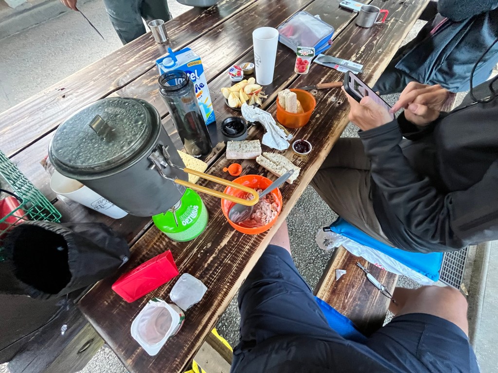 Early breakfast at Chamonix campsite yesterday. Gotta catch a bus!