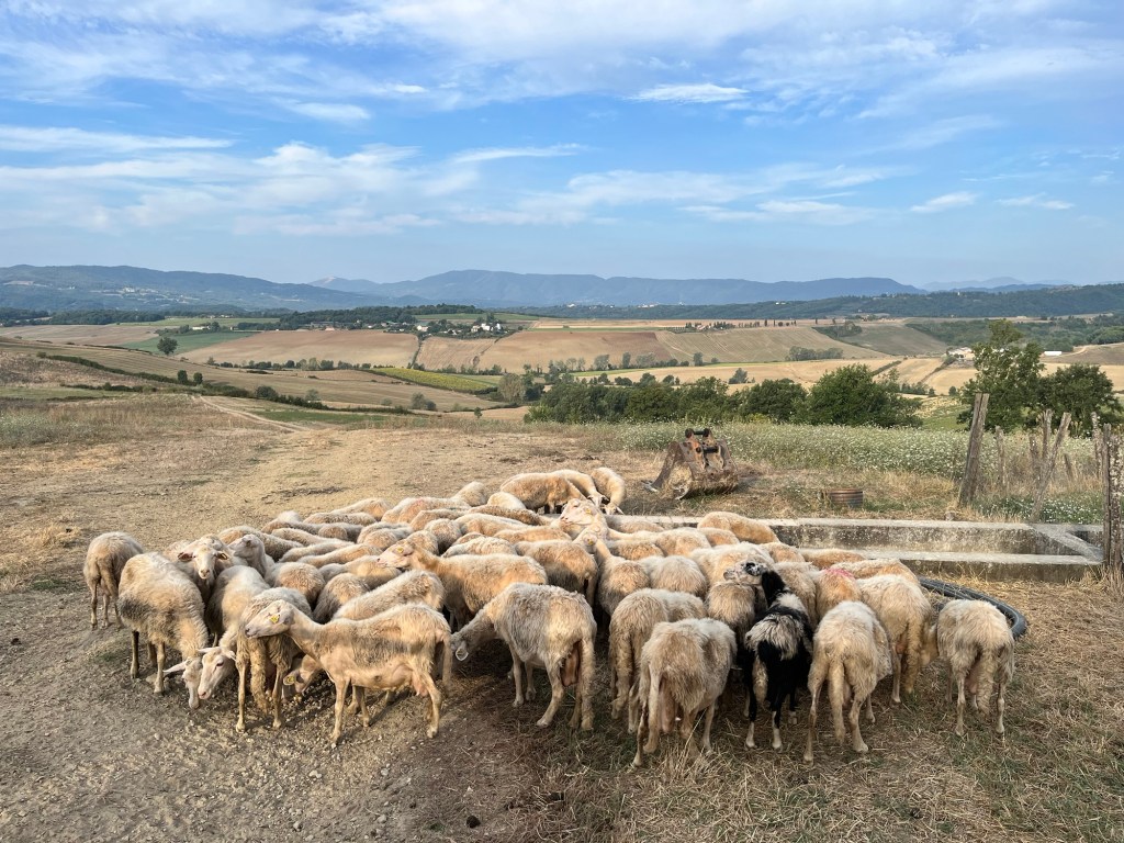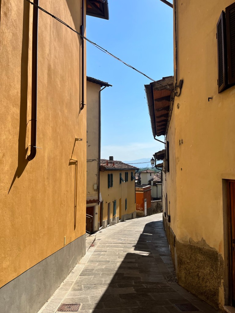 This morning we were up early and back at the little market for croissants 😋 and coffee/tea and lunch makings and after the long kms yesterday were rewarded with a lovely 9 km walk through the Tuscan countryside of farms and sunflower fields on a pretty country road to San Piero A Sieve where we walked through town and up to our campsite (nice shady tent-site!) in time for lunch, the heating day, and a slow afternoon.
