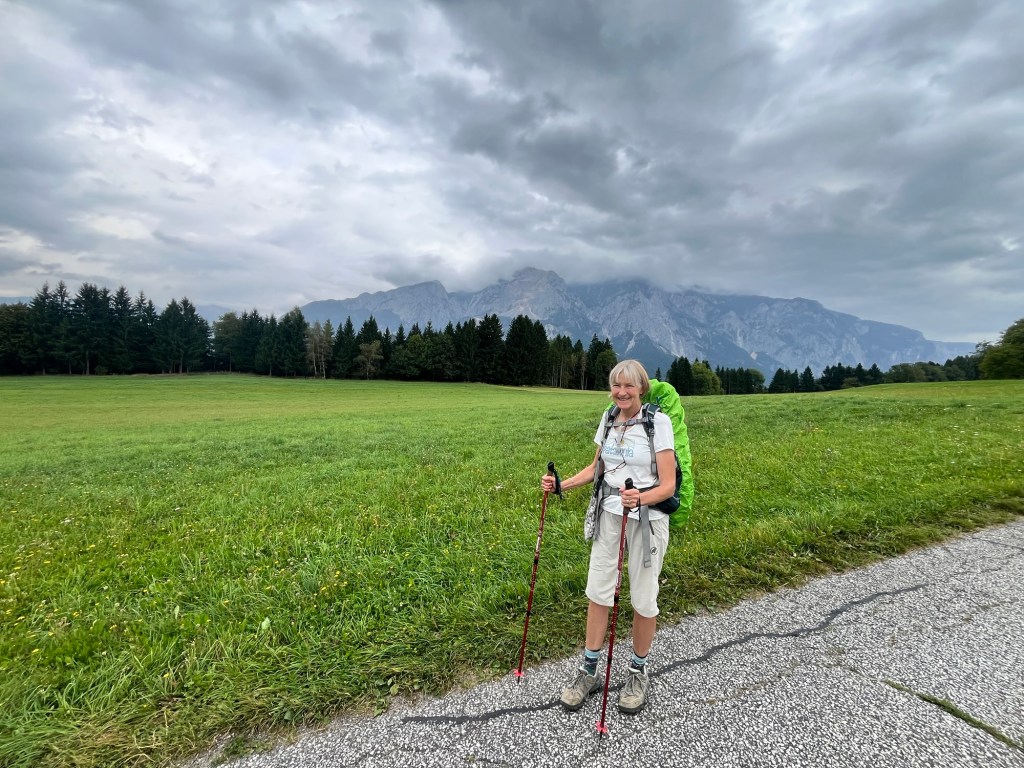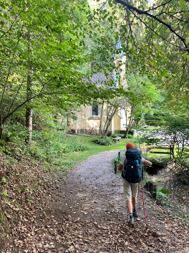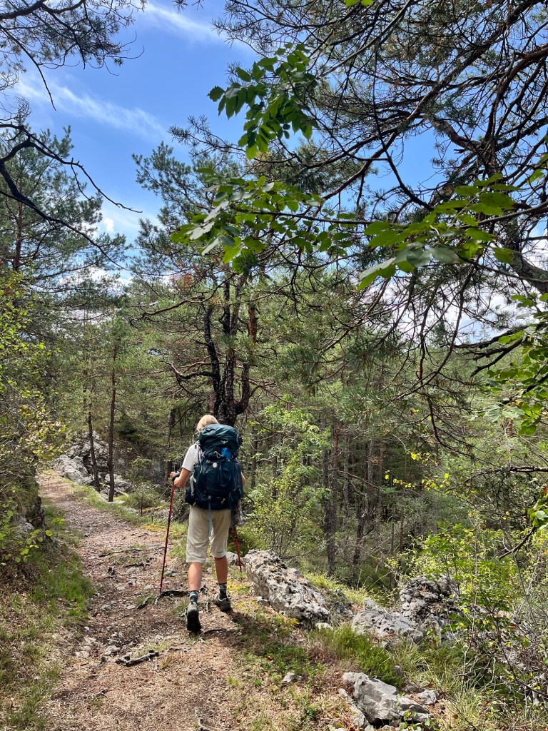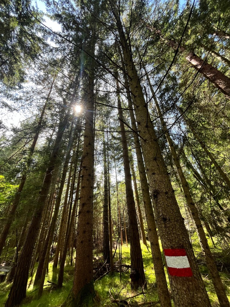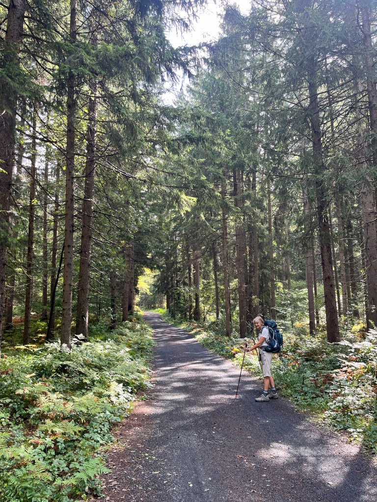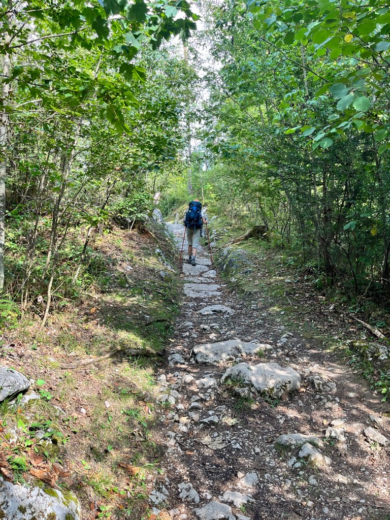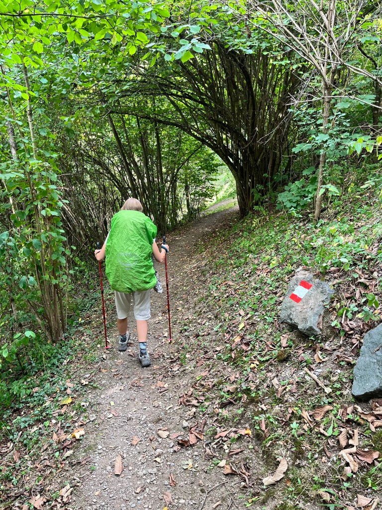 Today was stage 4 of the walk where, after a visit to an apotheke (pharmacy) to restock depleted supplies of ibuprofen and tylenol 🤓we walked North out of Arnoldstein crossed the Gail River back to the North side and then enjoyed a very gentle (but long) walk along the river at times then through more forests and through the towns of Oberschütt and Unterschütt. One area of the forest was quite different in vegetation and with scrub trees growing amongst scattered and very old large boulders. The story goes that there was a landslide here from far up on the mountainside that came down and destroyed a town – in 1348. The only structure to survive was the church! After a few kms back along the Gail we headed north again up through a low forested pass with another and longer section of Roman road carved out of the limestone. Centuries of wheel ruts still visible! The road linked Carinthia to Italy two millennia ago… very interesting story about the “Knights of Ras” who made trouble in the area in the Middle Ages and had to be banished by the bishop, but you’ll have to google it 😆. Anyway lots to see and read about on the walk including examples of ancient biodiverse protected meadows still intact and kept separate from grazing.
